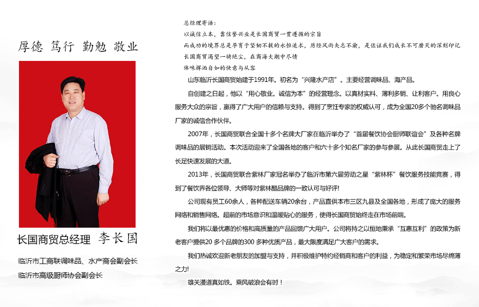 山東長國商貿有限公司董事長李長國寄語